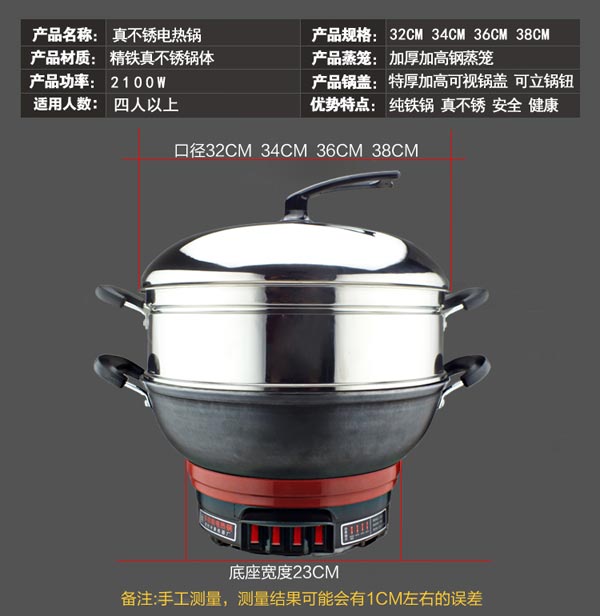真不銹電熱鍋_真不銹鐵電熱鍋,真不銹鍋體,永不生銹,1.5米國(guó)標(biāo)電源線,規(guī)格32CM\34CM\36CM\38CM,配置高,功能強(qiáng),使用方便。訂購電話:0533-658315