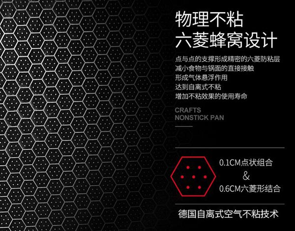 蜂窩懸浮炒鍋,是一款采用先進(jìn)工藝制造的無涂層不粘鍋,其具有不易粘鍋,健康安全的特點,是一款既高檔又實用的炒鍋。