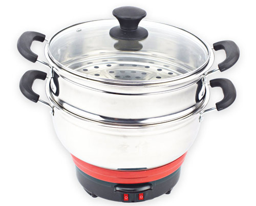 多功能小電熱鍋,24CM 26CM兩種規(guī)格,內有兩根加熱管獨立加熱,雙檔控制,內部設有溫控器,可有效防止干燒導致電熱鍋的損壞,配置不銹鋼一體蒸籠,更結實更美觀。